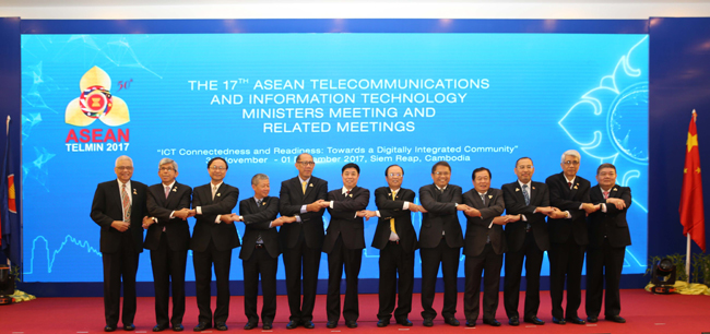 2017年12月1日,工业和信息化部党组成员、总工程师张峰在柬埔寨暹粒与柬埔寨邮电部部长陈友德共同主持了第十二次中国-东盟电信部长会议。