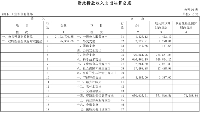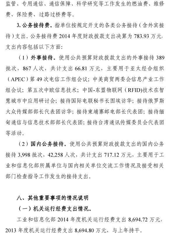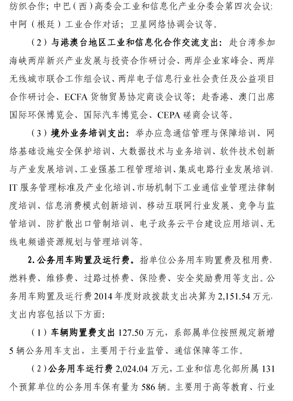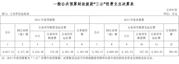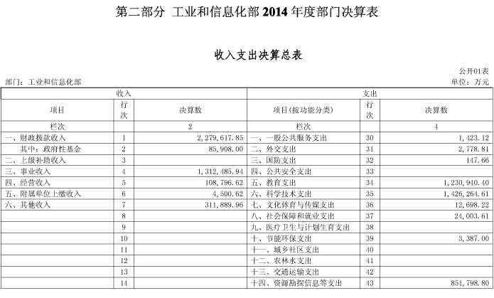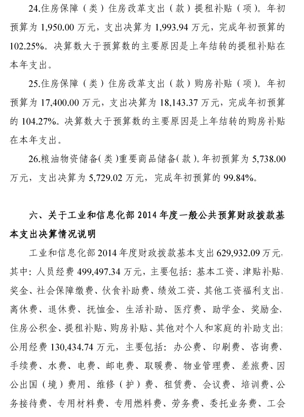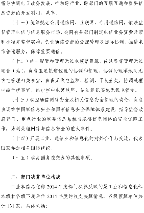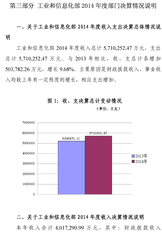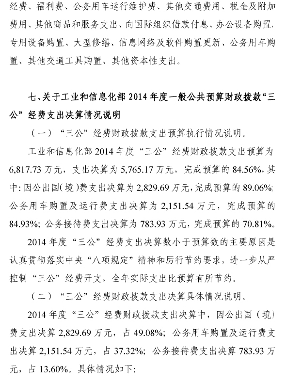 工业和信息化部2014年度部门决算