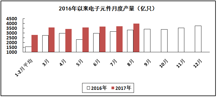 电子元件行业生产稳中略降。1-8月,生产电子元件27459亿只,同比增长16.5%。出口交货值同比增长13.2%,其中8月份增长16.0%。